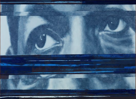 Dion Rosina (1991) is in 2021 afgestudeerd aan de Breitner Academie. Hij neemt voor de vierde keer deel aan de tentoonstelling van de genomineerden. Hij heeft zich de laatste jaren onderscheiden met ingetogen schilderijen waarin hij fragmenten uit bestaande beelden samenvoegt tot een nieuw geheel, een techniek die door hem ook wel sampling wordt genoemd. Hij maakt gebruik van traditionele schildertechnieken. Inhoudelijk laat hij zich inspireren door bijzondere verhalen, mythes, spiritualiteit en belangrijke figuren en momenten in de geschiedenis in relatie tot onder meer de Afrikaanse diaspora. Het beeldvlak in zijn oeuvre is vaak opgebouwd uit een combinatie van een realistische weergave van objecten, patronen en historische figuren enerzijds, en strakke abstracte velden waarin hij met licht en donkere kleuren contrasten aanbrengt anderzijds. In ‘Trauma & grace’ (2025), dat is opgezet in grijs en zwarte tinten, ontleent Rosina een fragment van het portret van een zwarte vrouw uit 1800 van de Franse kunstenares Marie-Guillemine Benoist. Nadat onderzoek uitwees dat het wellicht om de tot slaaf gemaakte bediende van haar zwager gaat heeft de geportretteerde een naam gekregen en is het werk sindsdien getiteld ‘Portret van Madeleine’. Het gezicht van de geportretteerde is naar de toeschouwer gedraaid. Ernaast staat een zwarte mannelijke figuur van wie we slechts zijn rug zien. Door de combinatie van hun voor- en achterzijde en een golvende slinger die de twee figuren verbindt verkrijgt het beeld een zekere dynamiek. Rechts in beeld bevindt zich een wijsvinger die een stralende zon aanraakt. De schilderijen ‘Drift to the centre’ (2025) en ‘Contemplating more views’ (2025) wijzen op een nieuwe ontwikkeling; de collageachtige opbouw van het beeldvlak is achterwege gelaten. De kleurrijke rand van ‘Drift to the centre’ is geïnspireerd op de abstracte, atmosferische kleurvelden van Mark Rothko. Met de vage contouren van een zwarte man en drie knokkels die in het beeldvlak opdoemen trekt Rosina onze blik naar binnen. Door abstractie en figuratie in elkaar over te laten vloeien onderzoekt hij de mogelijkheid om verstilling en concentratie op te roepen, in “een tijd waarin veel mensen ontheemd zijn van hun innerlijke of contemplatieve kant”, aldus de kunstenaar. ‘Contemplating more views’ lijkt op een hapering in een televisiebeeld. Het gezicht van een man wordt doorsneden en vermenigvuldigd - more views - door de typische horizontale strepen in het beeld die we vaak zien als er een storing is.